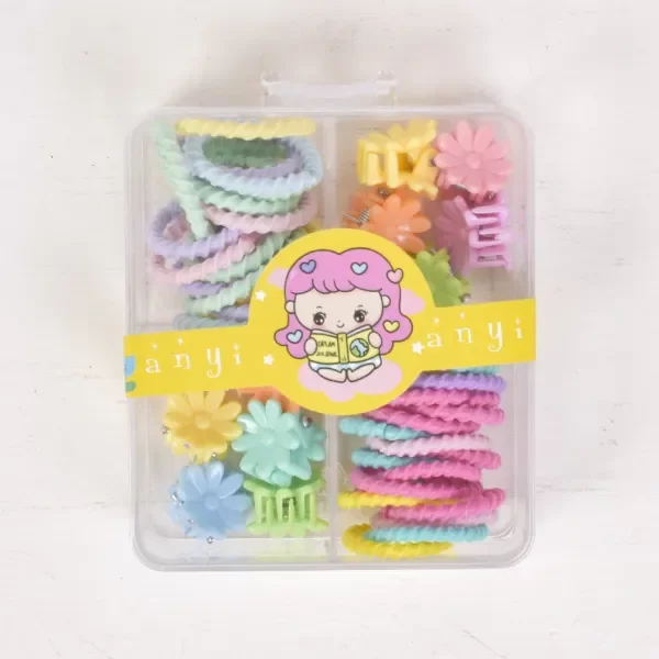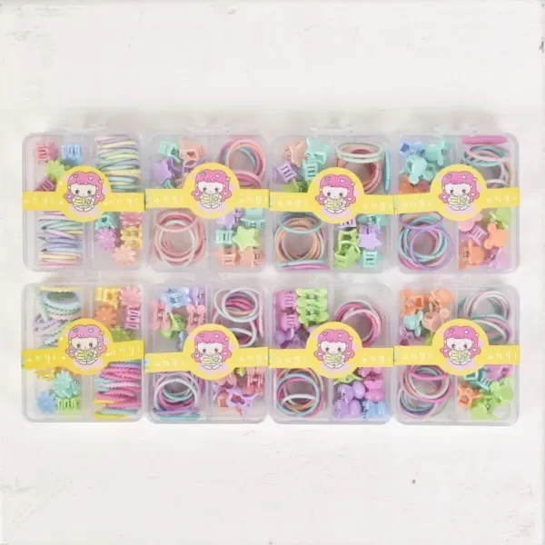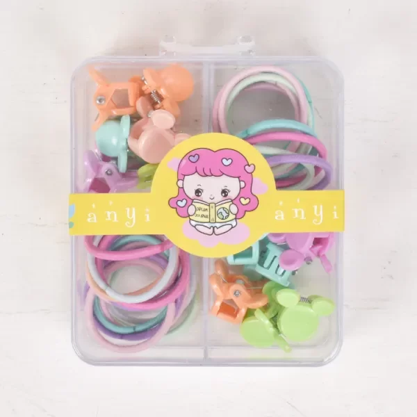 Cajita plástica con brochecitos y coleritos pequeños.