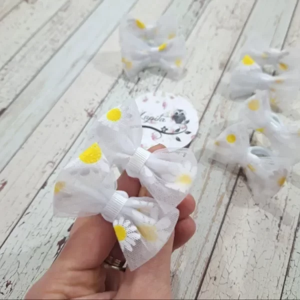 Par de coleritos pequeños con moño de tela.