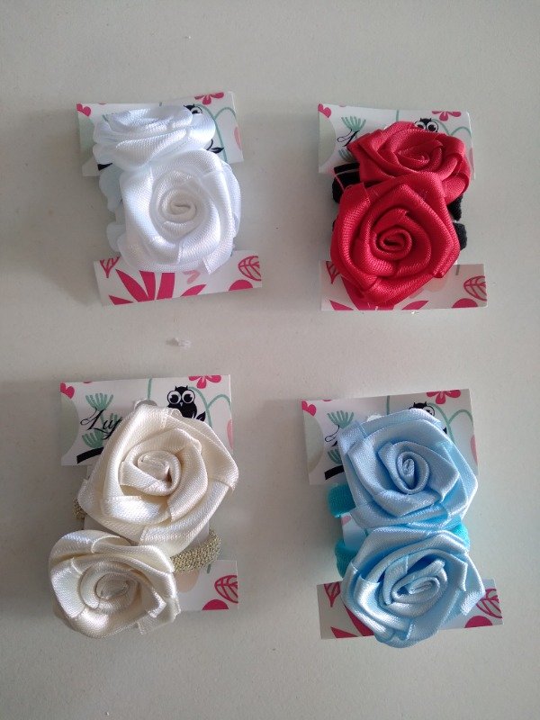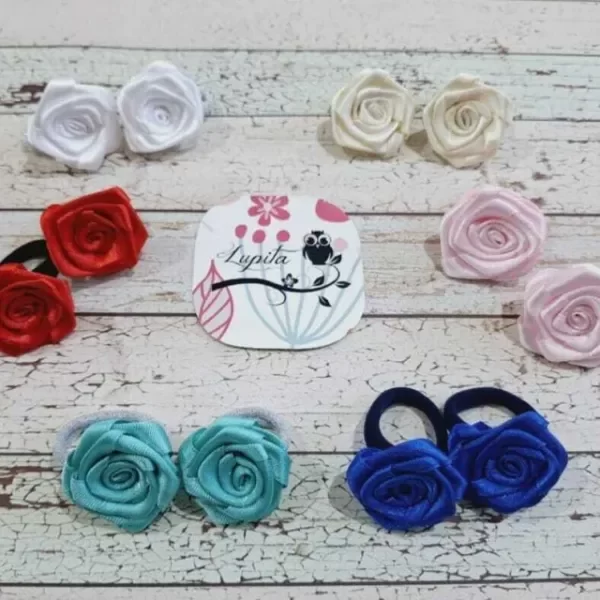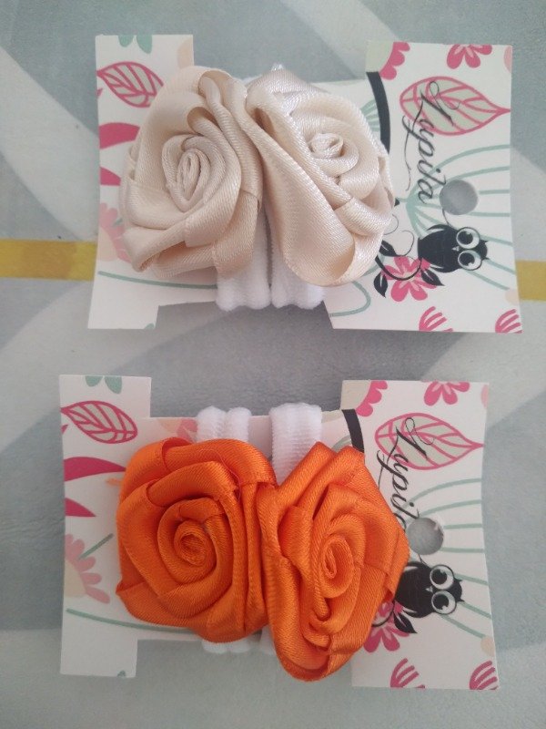 Par de coleritos pequeños con flor de cinta de raso.