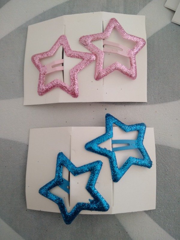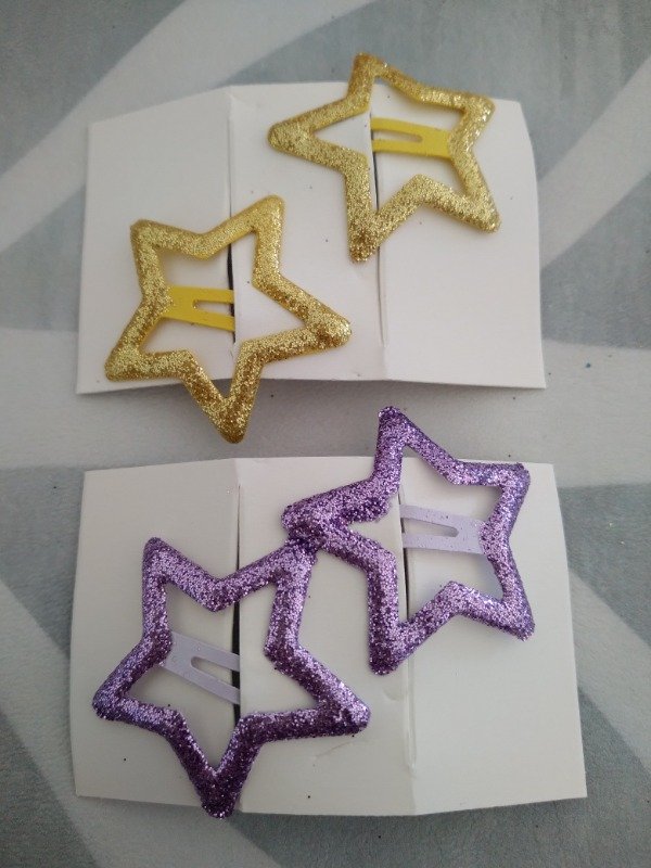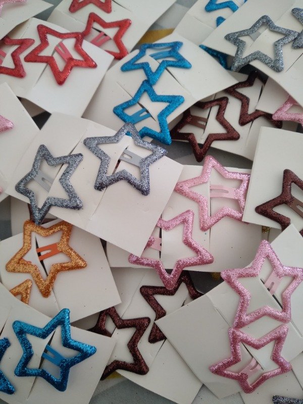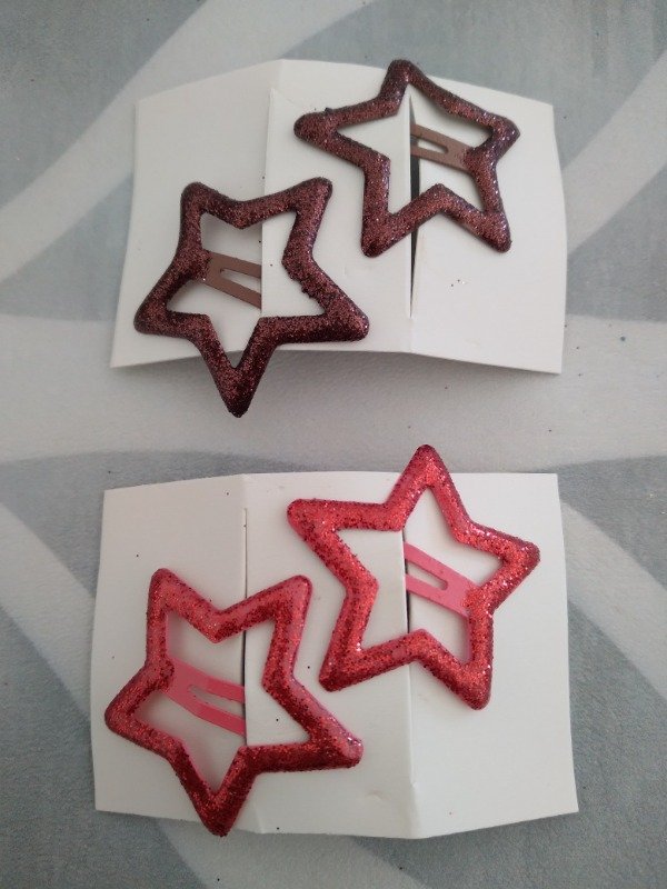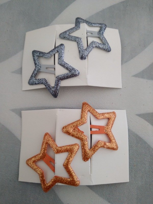 Par de hebillas cric-crac con forma de estrella y glitter.