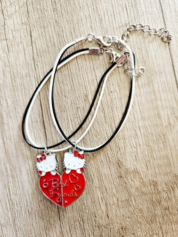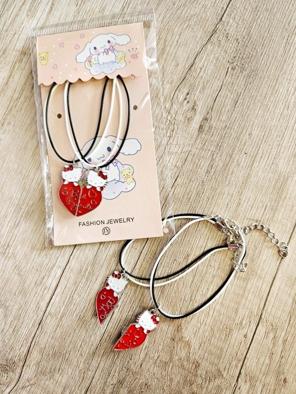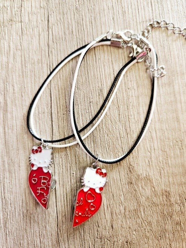Incluye 2 pulseras, cada una con medio corazón. Se unen con imán.