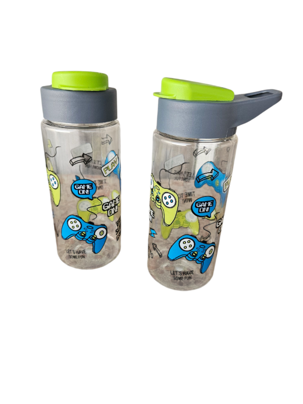 Botella plástica con tapa.