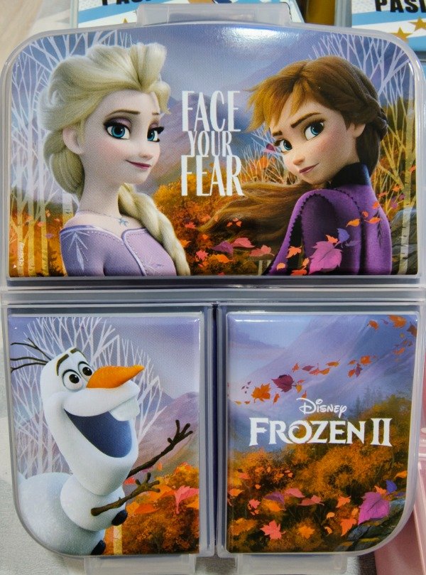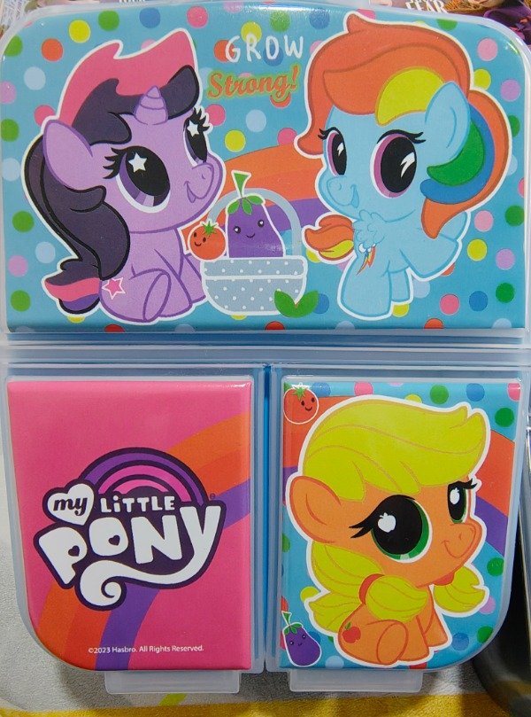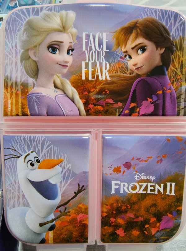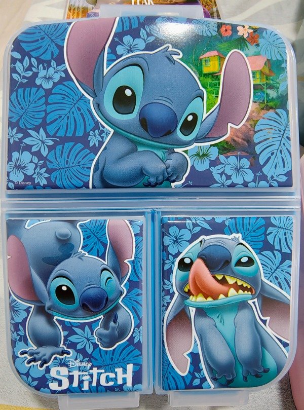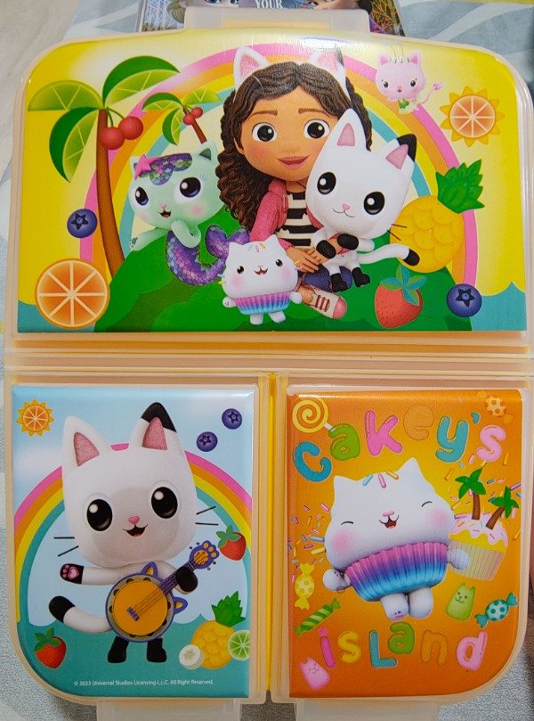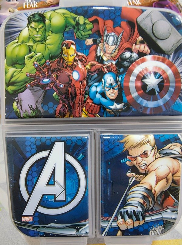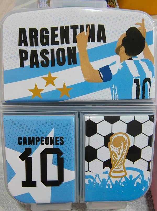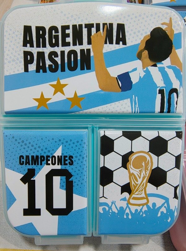 Tupper plástico con 3 divisiones, base color rojo.