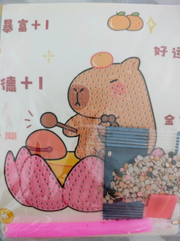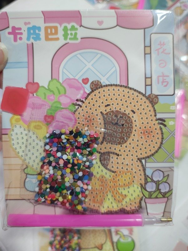Contiene: una imagen pequeña, diamantes, cerita y lápiz para colocarlos.