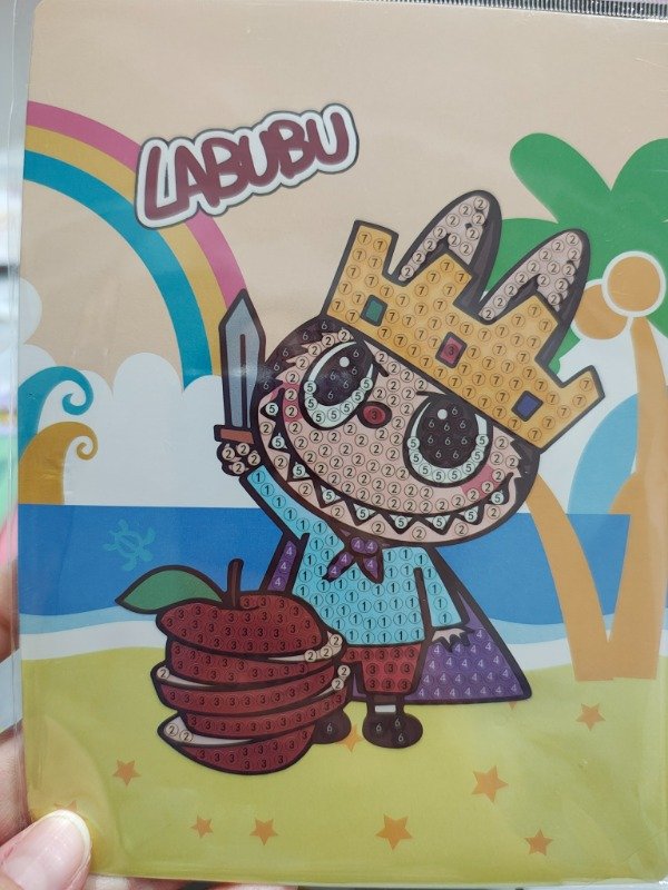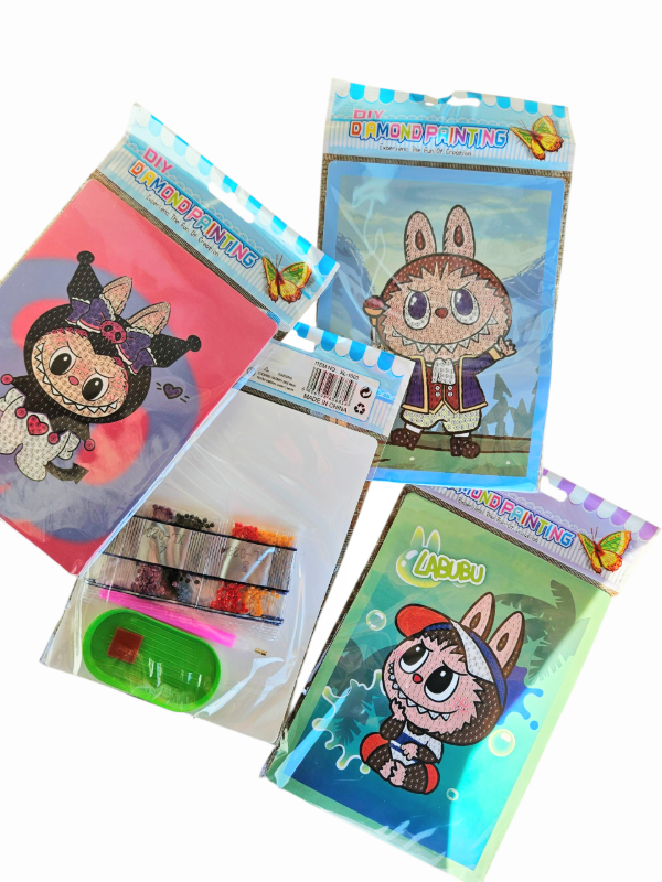 Contiene: una imagen en cartón, diamantes, bandejita, cerita y lápiz para colocarlos.