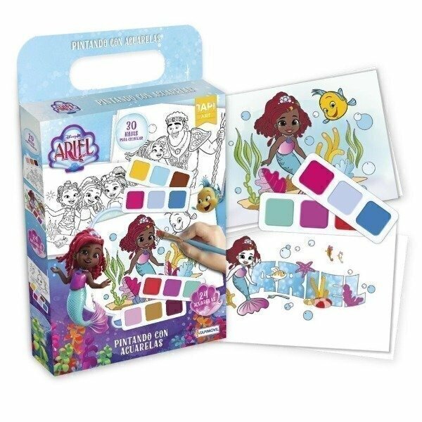 Contiene: 30 hojas para colorear, 24 acuarelas y 1 pincel. Instrucciones: Humedecé el pincel en agua, frotalo sobre el color que elijas y ya está listo para colorear los dibujos.