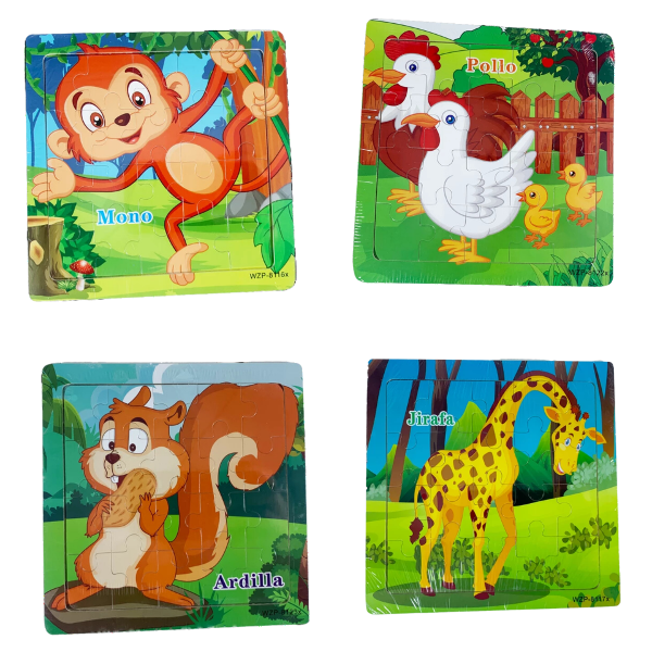 Rompecabezas de 20 piezas con base de madera.