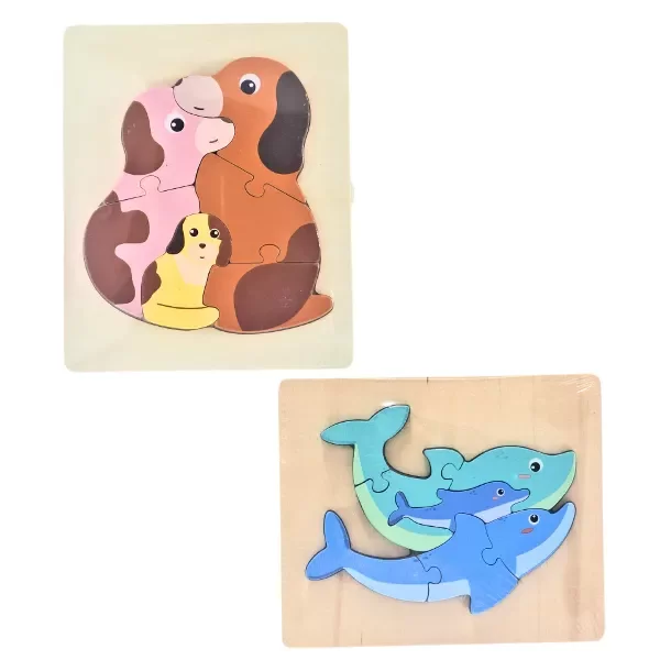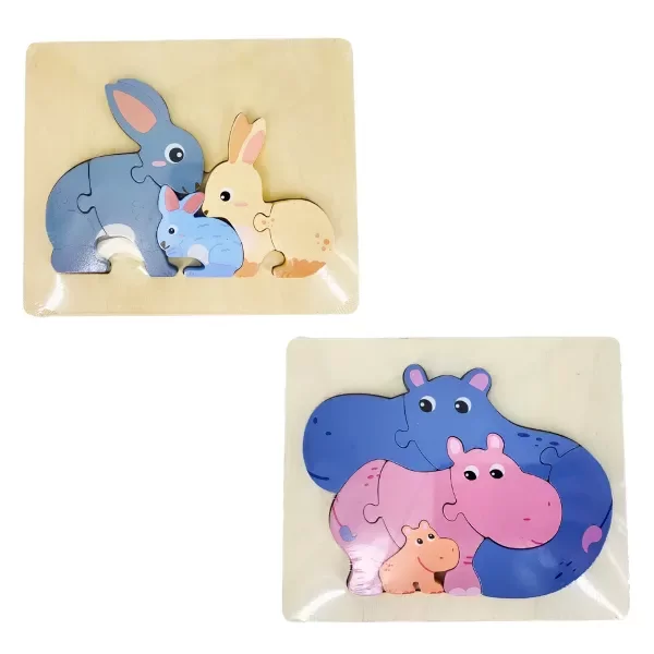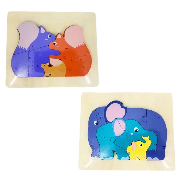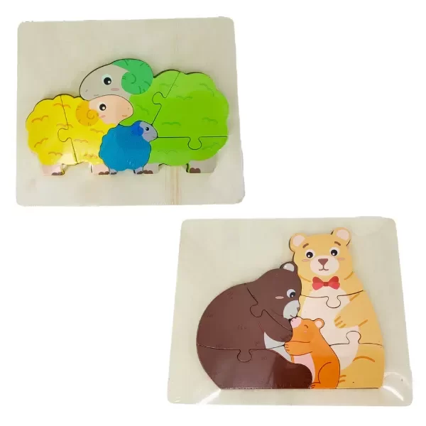 Rompecabezas de madera con base, con 6 o 7 piezas según el modelo.
