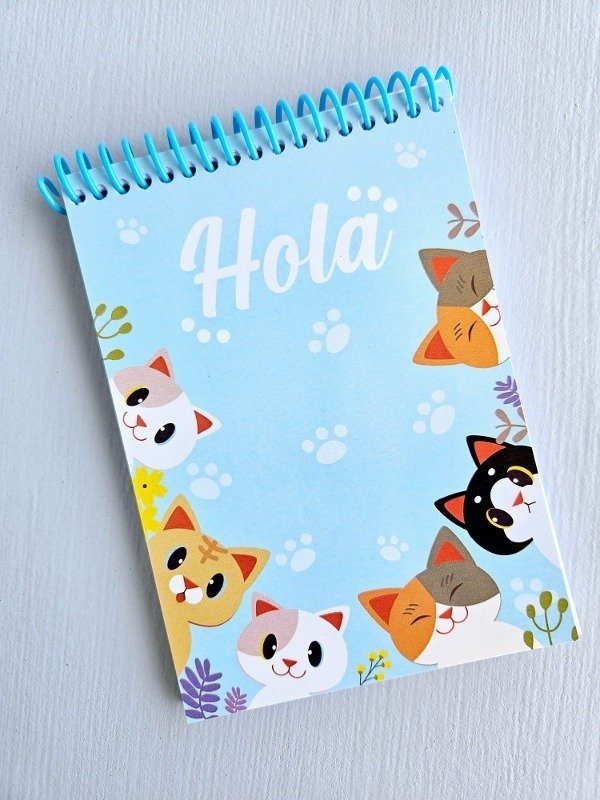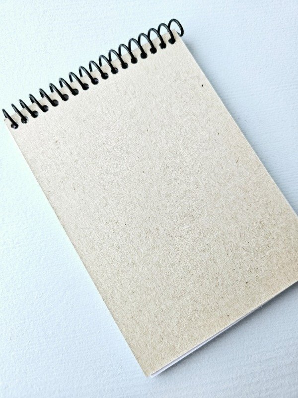 Libreta anillada tapa blanda de cartulina laminada y contratapa de cartón. Tamaño A6 con 50 hojas blancas.