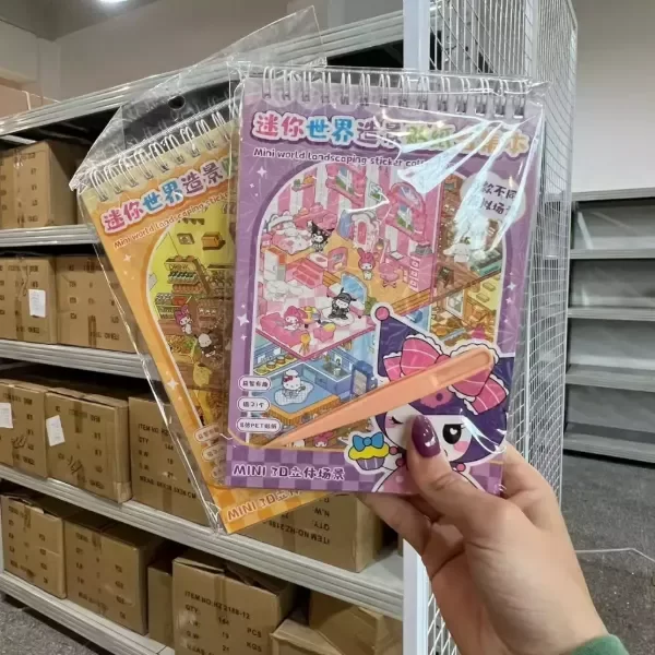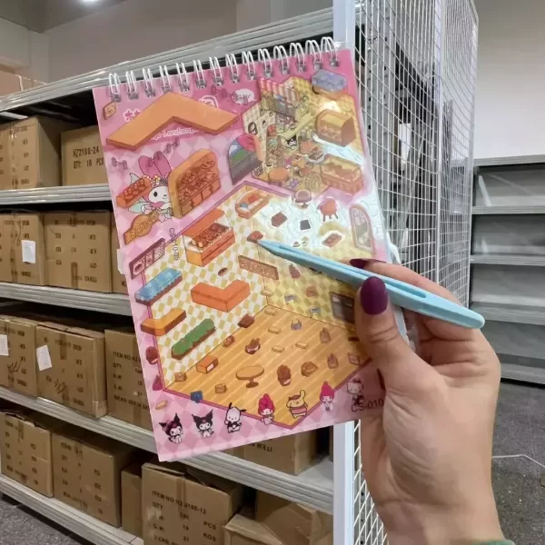 Libreta espiralada con 8 páginas de escenarios 3D y stickers removibles para armar tu propio mundo kawaii. Incluye pinza para mover las figuras y crear diferentes combinaciones.