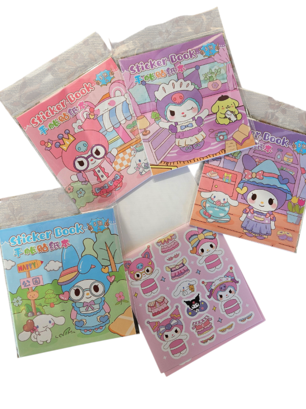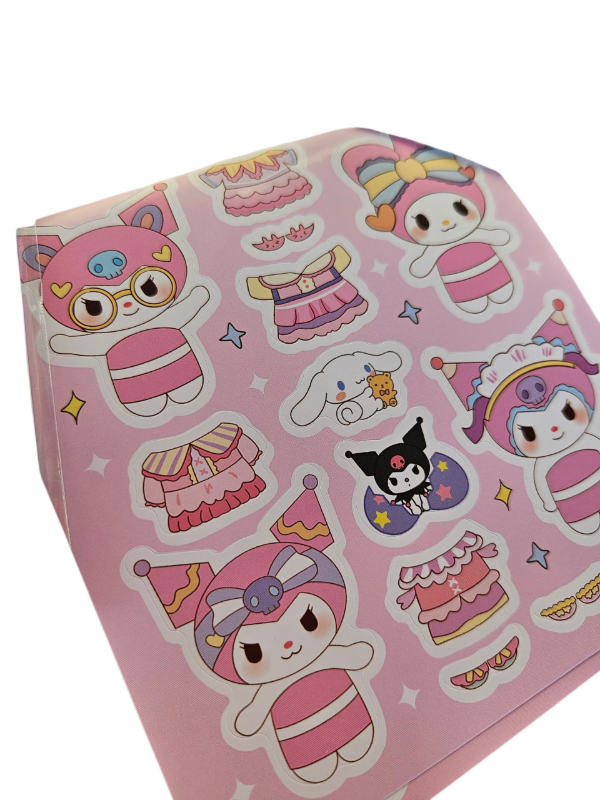 Librito con 5 planchas de stickers, con personajes y ropita.