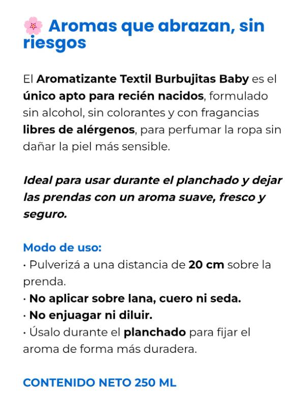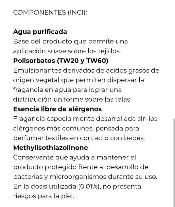 Aromatizante hipoalergénico para ropa de bebé. Más información en las imágenes.
