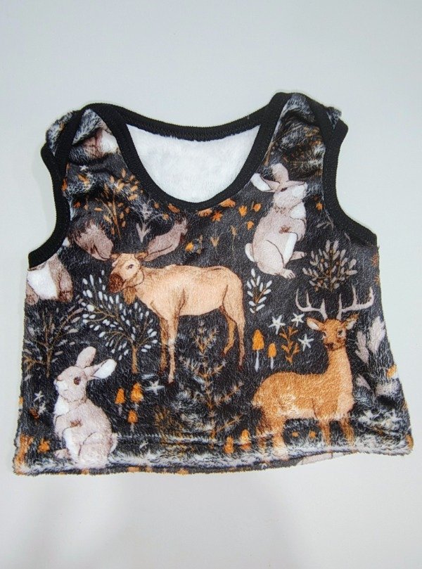 Chaleco de corderito doble faz, super abrigadito y elastizado... con cuello americano para más comodidad.